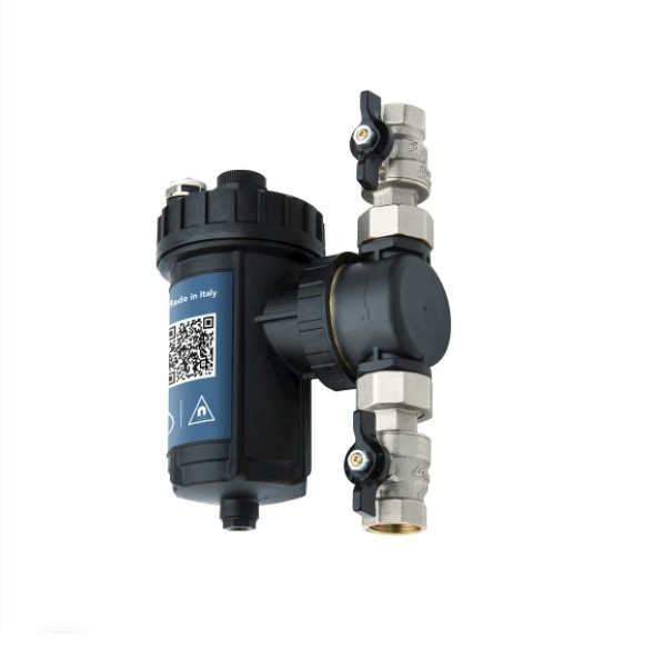 SafeCleaner2 ¾"Multifunctionele magnetische vuilafscheider (serie 2319) van polymeer voor het effectief verwijderen van magnetisch en niet-magnetisch vuil uit verwarmings- en koelinstallaties. Met geïntegreerde kogelkranen.
